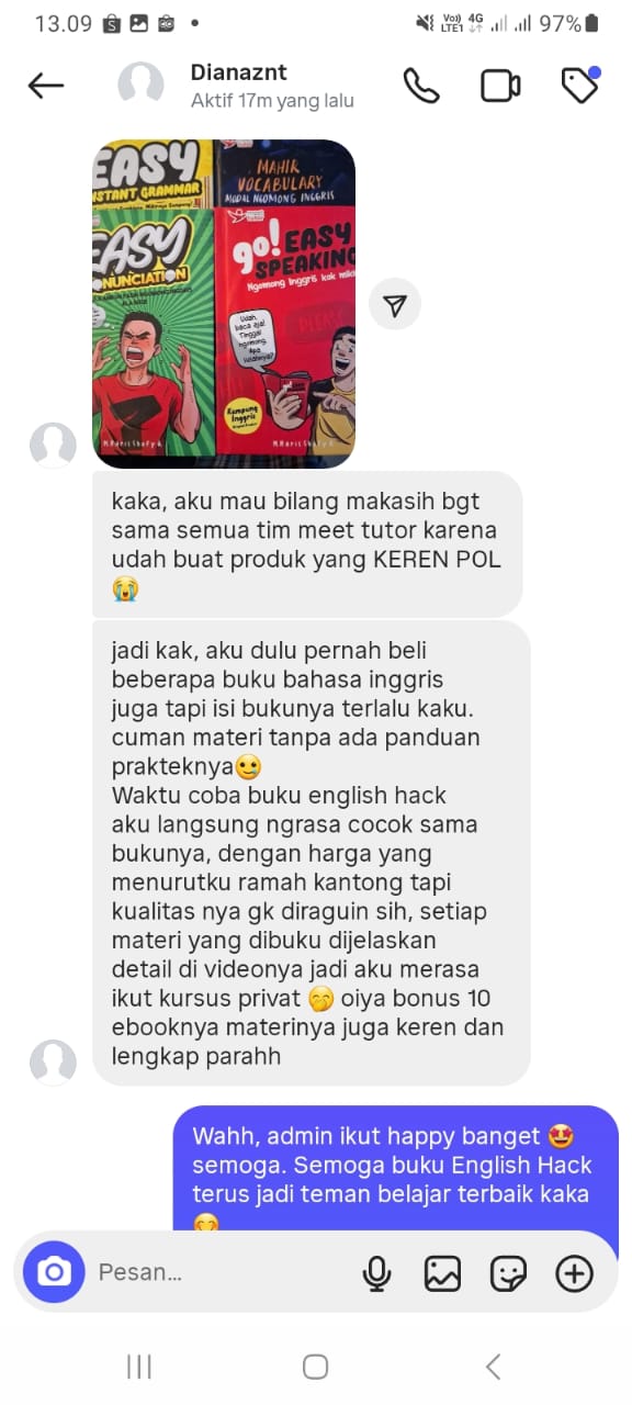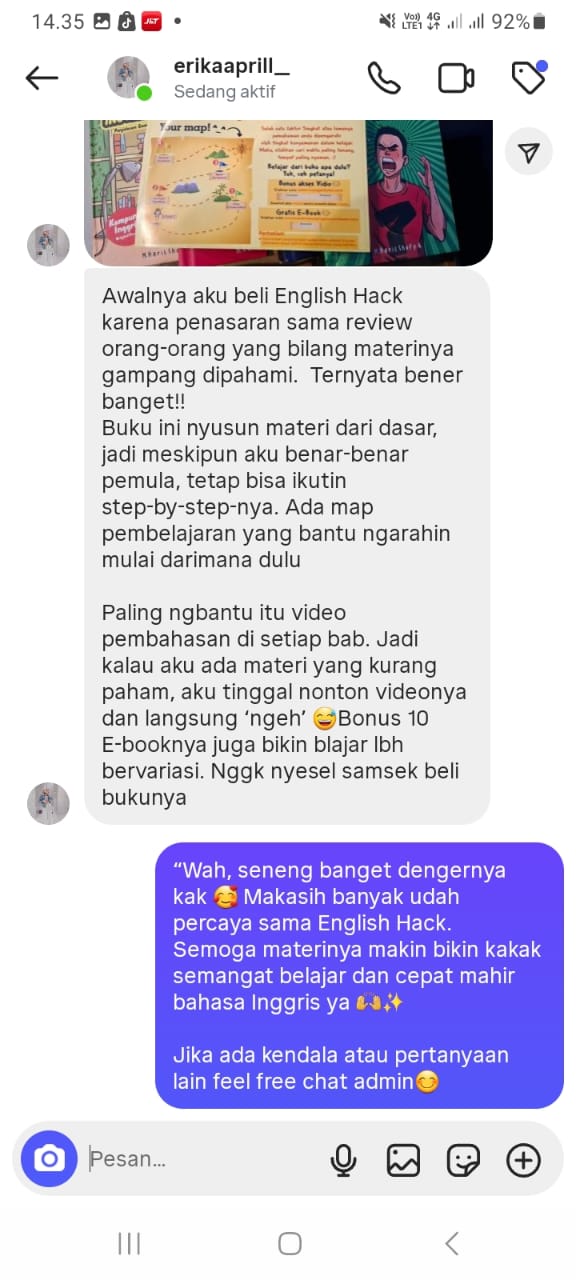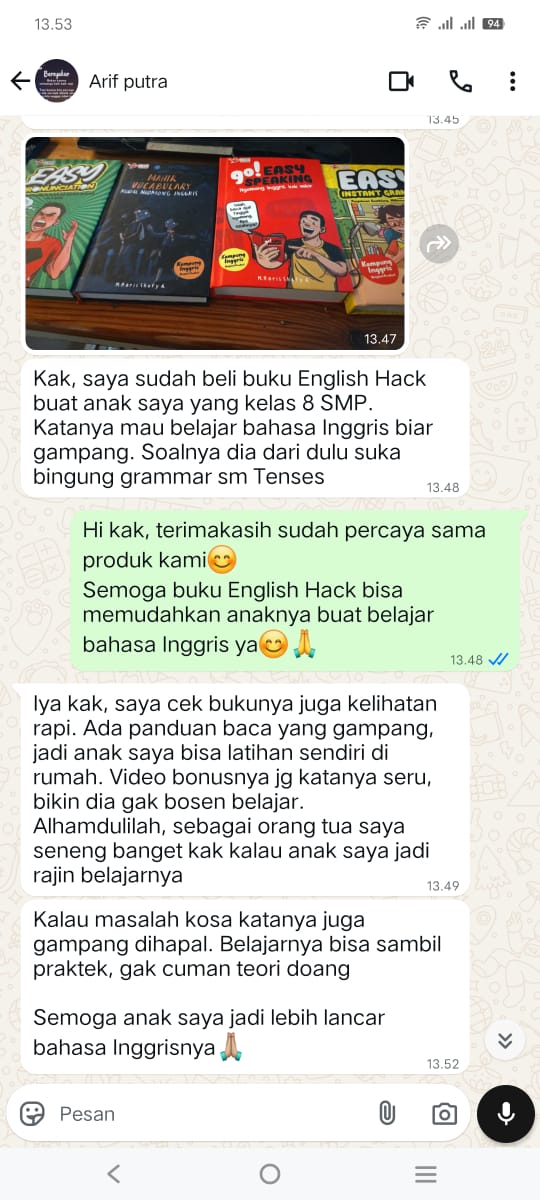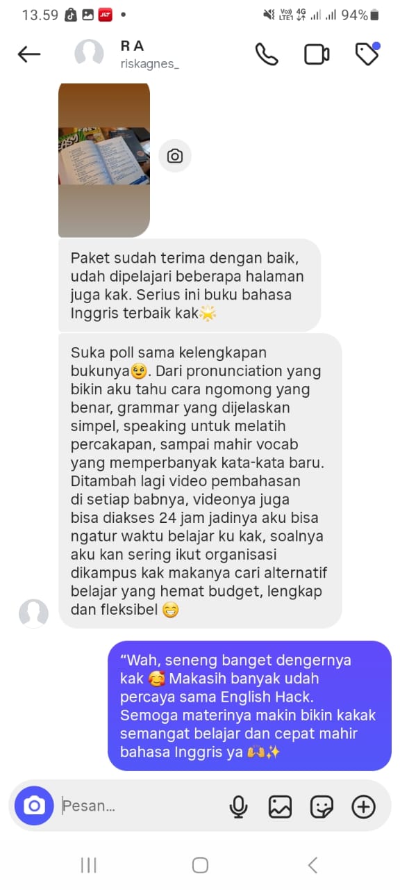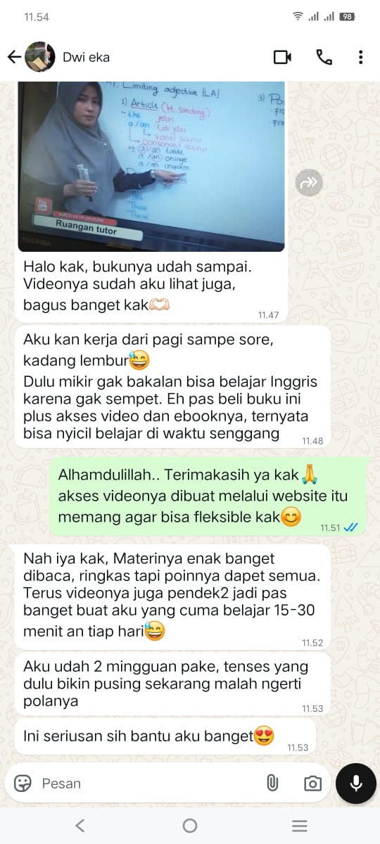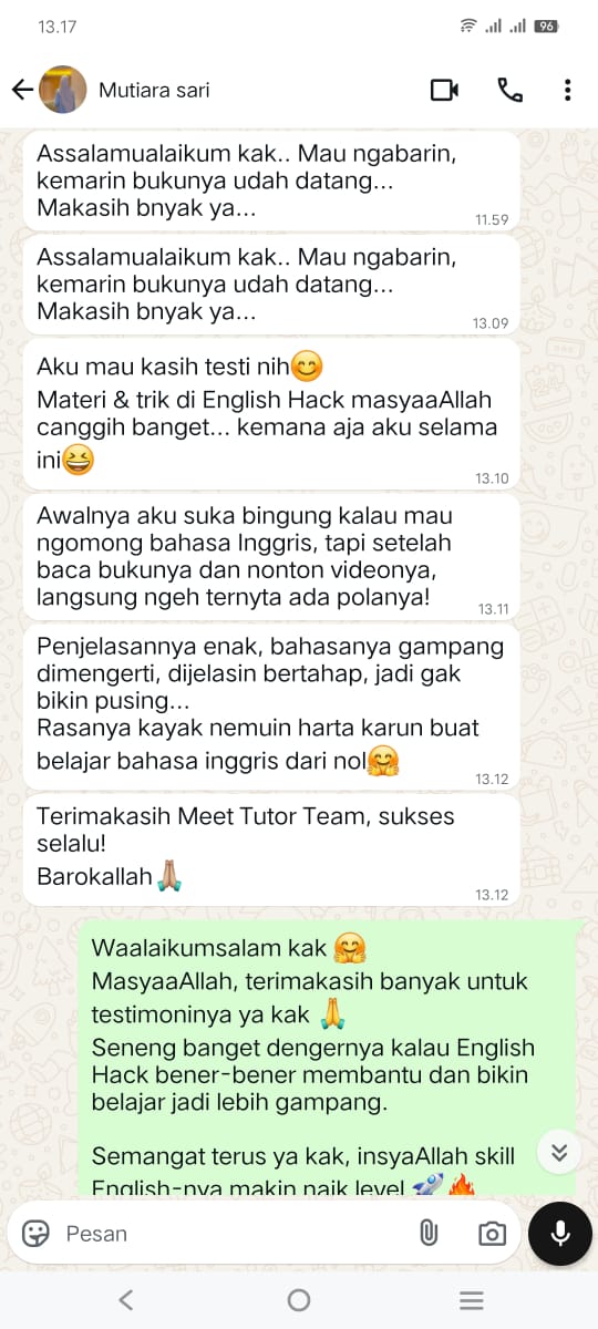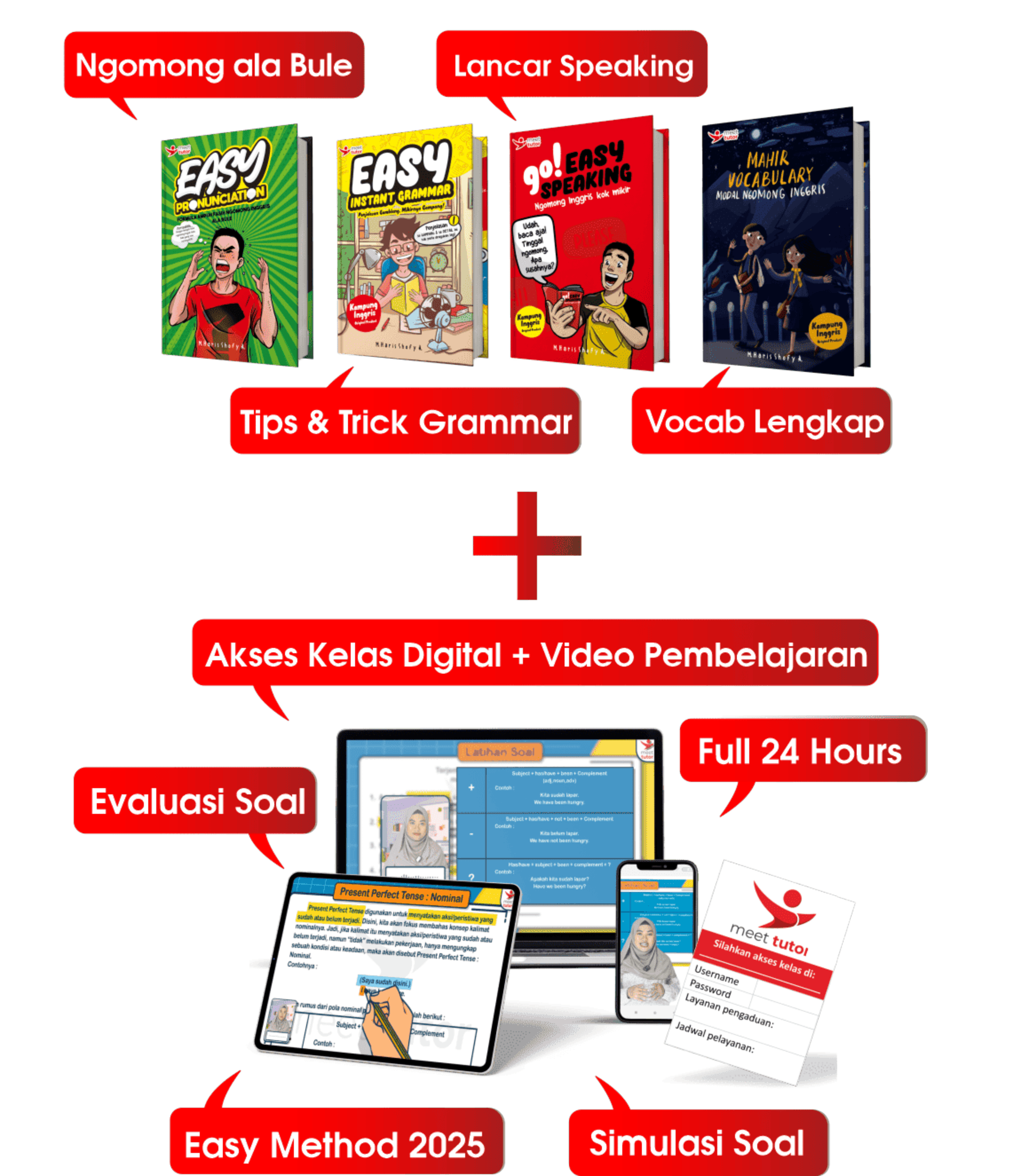 Kamu dapat masa mengakses video full penjelasan dari buku 4 English Hack dan akan di jelaskan langsung oleh tutor senior Kampung Inggris Pare